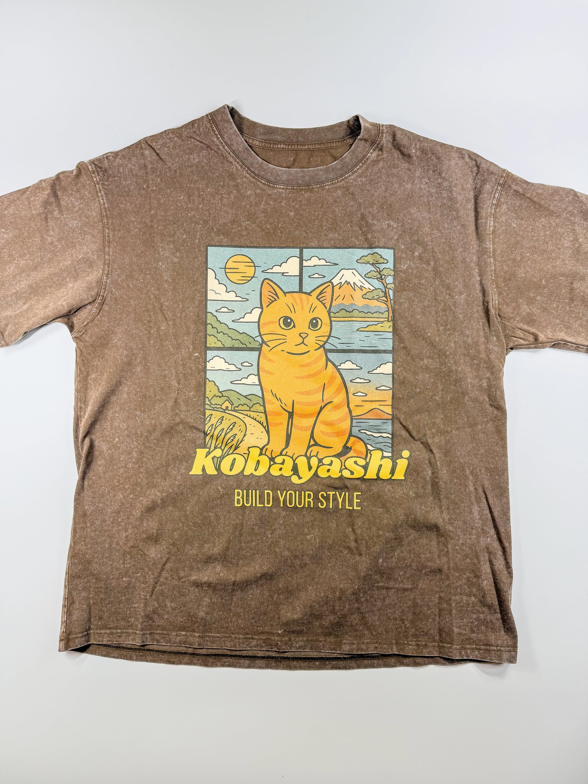 這款短袖 T 恤以 Kobayashi 品牌原創角色 ChaJai 為主角,融合日本浮世繪風格插畫背景,將經典美學轉化為當代設計,展現獨特的藝術視覺與文化態度。插畫以細膩線條與懷舊色調呈現,貫徹品牌「Build Your Style」理念,鼓勵穿著者以自我風格為出發點,打造專屬日常。